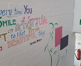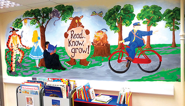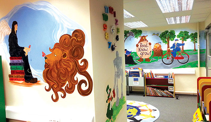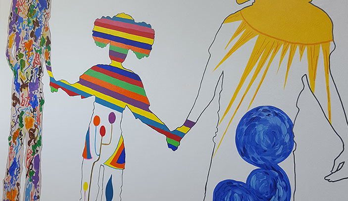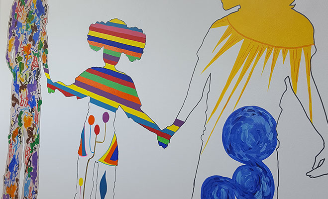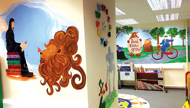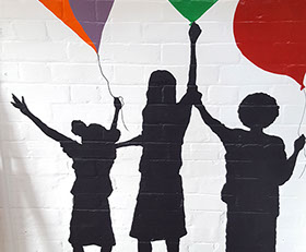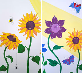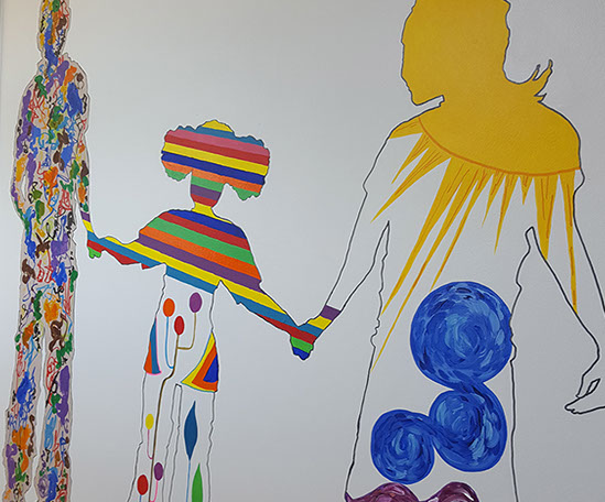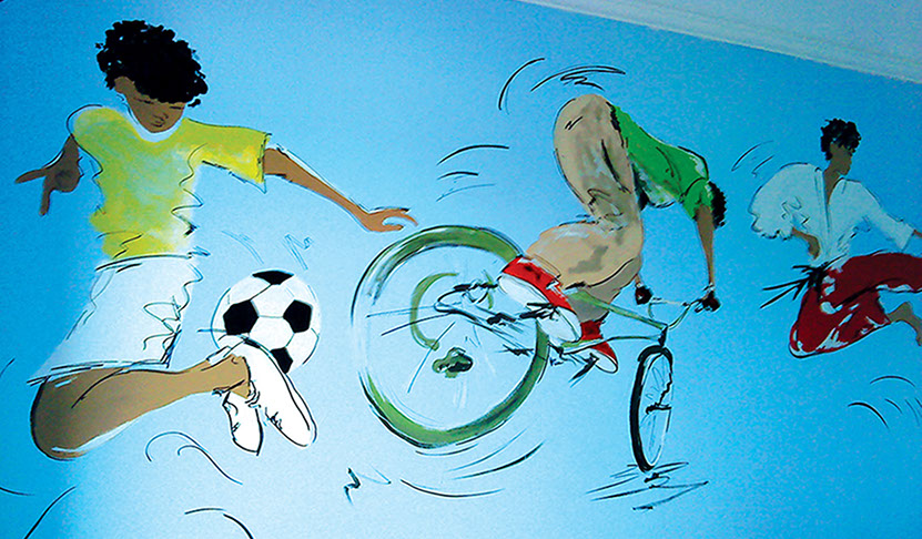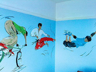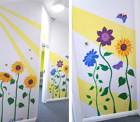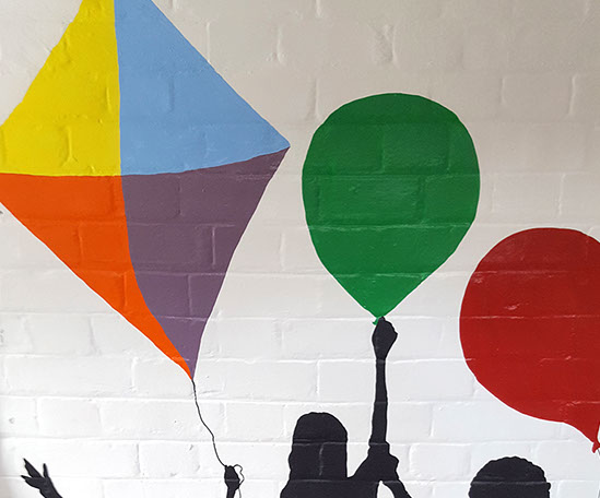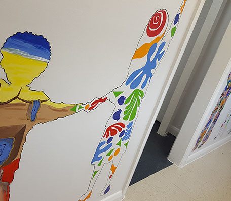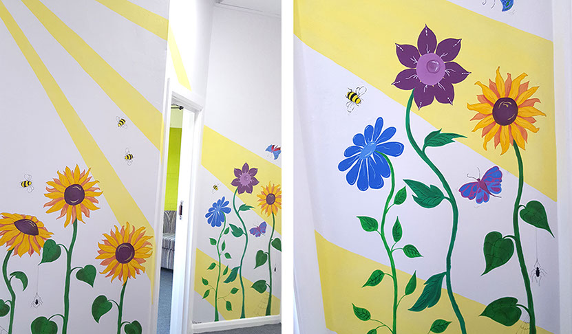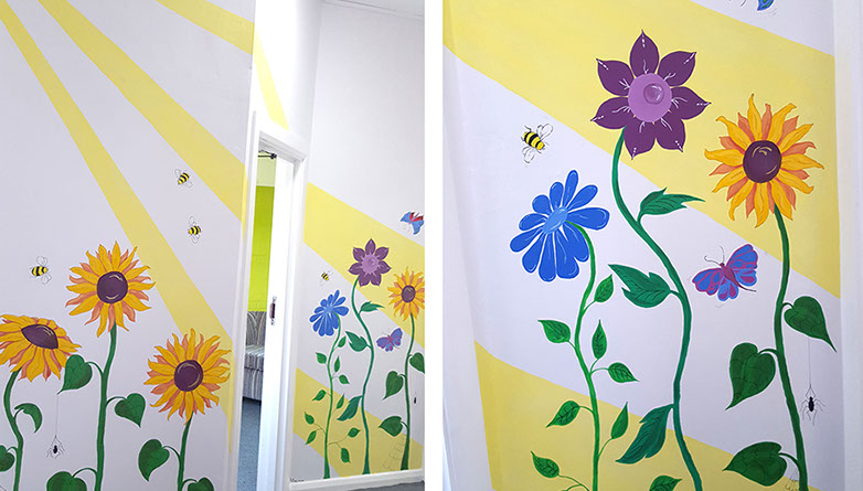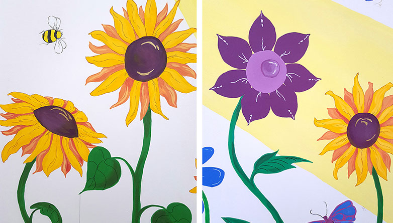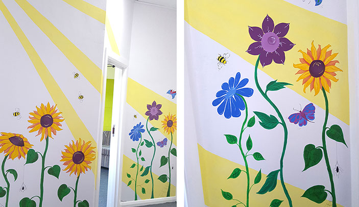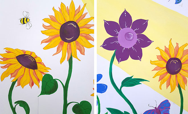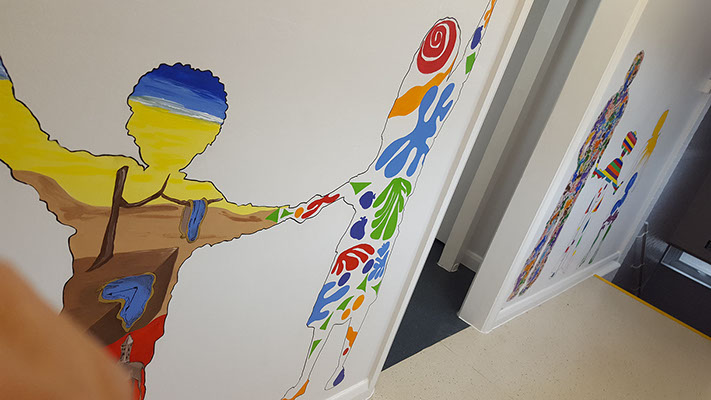 I love to us bright vibrant colours and movement in my murals and to see the painting come to life and be captivating to an audience.